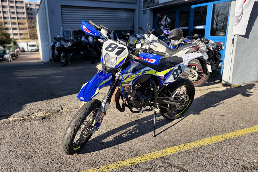 Excellent état ! Pas de frais à prévoir Véhicule révisé Version RS avec : - Fourche inversée - Guidon Ø28 - Protèges mains Option supplémentaire : - Echappement TECNIGAS