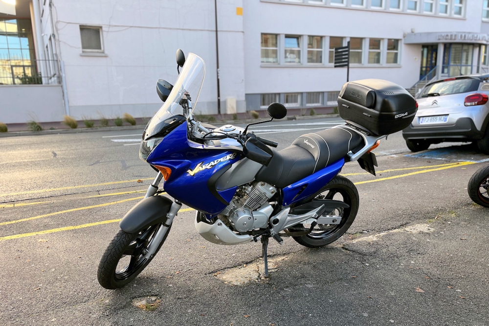 Très bon état Pas de frais à prévoir Véhicule révisé Historique entretien disponible Equipements : - Bulle haute ERMAX - Protèges mains - Sabot moteur - Top case SHAD SH44 avec dosseret - Selle confort BAGSTER