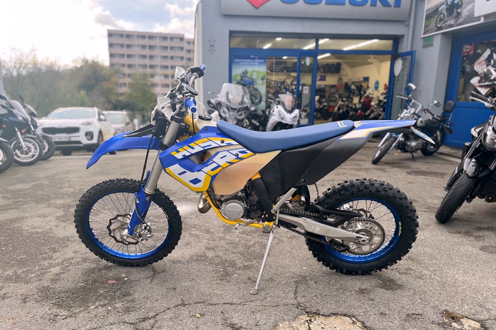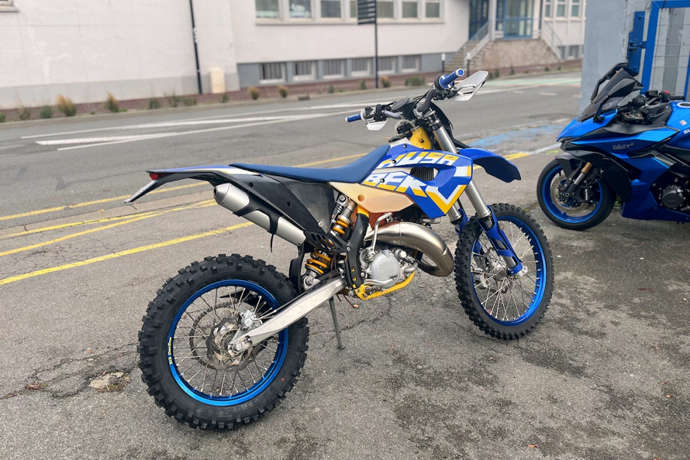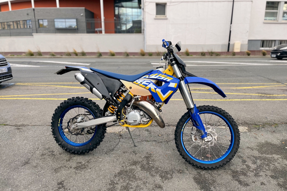 Cette HUSABERG TE 125 de 2012 est identique à une KTM de EXC 125 de 2011, avec en plus tés de fourche taillés masse et la fourche WP48