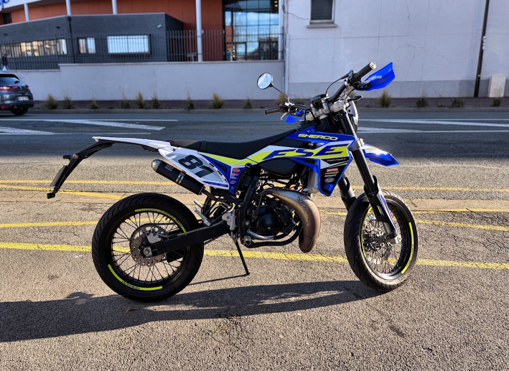 Excellent état ! Pas de frais à prévoir Véhicule révisé Version RS avec : - Fourche inversée - Guidon Ø28 - Protèges mains Option supplémentaire : - Echappement TECNIGAS